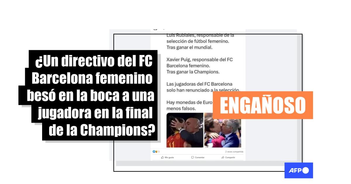 Los usuarios comparan esa escena con otra en la que se ve a la blaugrana Engen recibiendo, aparentemente, un beso del directivo del club Xavier Puig. A pesar de que las publicaciones señalan que esa escena fue tomada “tras ganar la Champions”, Engen luce en el brazo derecho el emblema de la Copa de la Reina, un distintivo de otra competición.