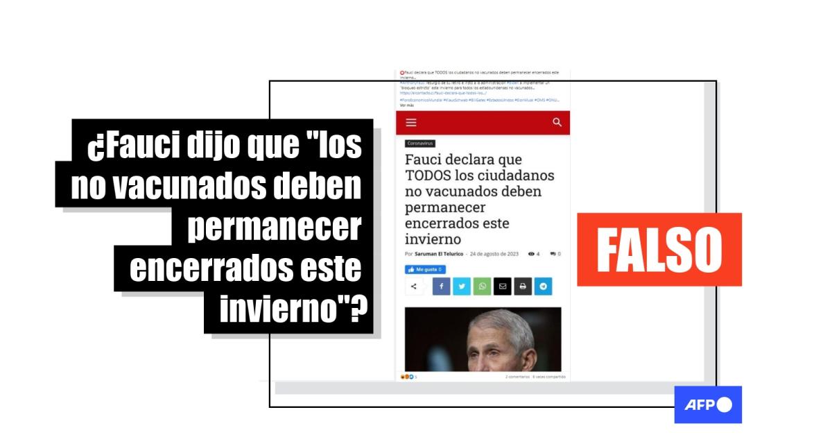 “Nunca mencioné nada sobre cuarentenas y la declaración que se me atribuye es incorrecta”, dijo Fauci a la AFP el 30 de agosto de 2023. El doctor insistió en que “en ningún momento” mencionó la necesidad de confinamientos “ni para las personas vacunadas ni para las no vacunadas”.