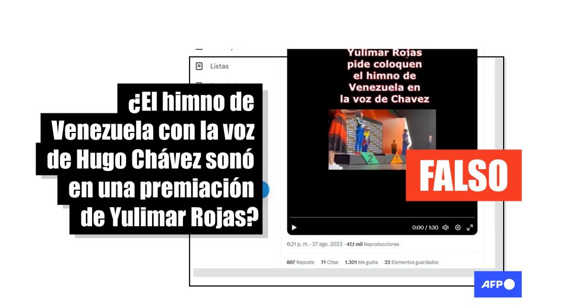 “Yulimar Rojas pide coloquen el himno de Venezuela en la voz de Chávez”, se lee en entradas que difunden la secuencia y capturas de pantalla de ella en Facebook (1, 2), TikTok (1, 2) y X, antes Twitter.