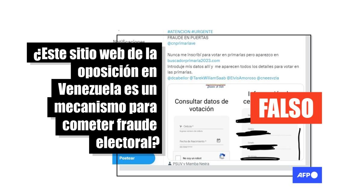 Los mensajes viralizados muestran capturas de pantalla de un sitio web creado por la oposición venezolana para que los ciudadanos consulten su lugar de votación de cara a las elecciones primarias, previstas para el 22 de octubre, en las que se elegirá un candidato único para enfrentar al presidente Nicolás Maduro en los comicios generales de 2024.