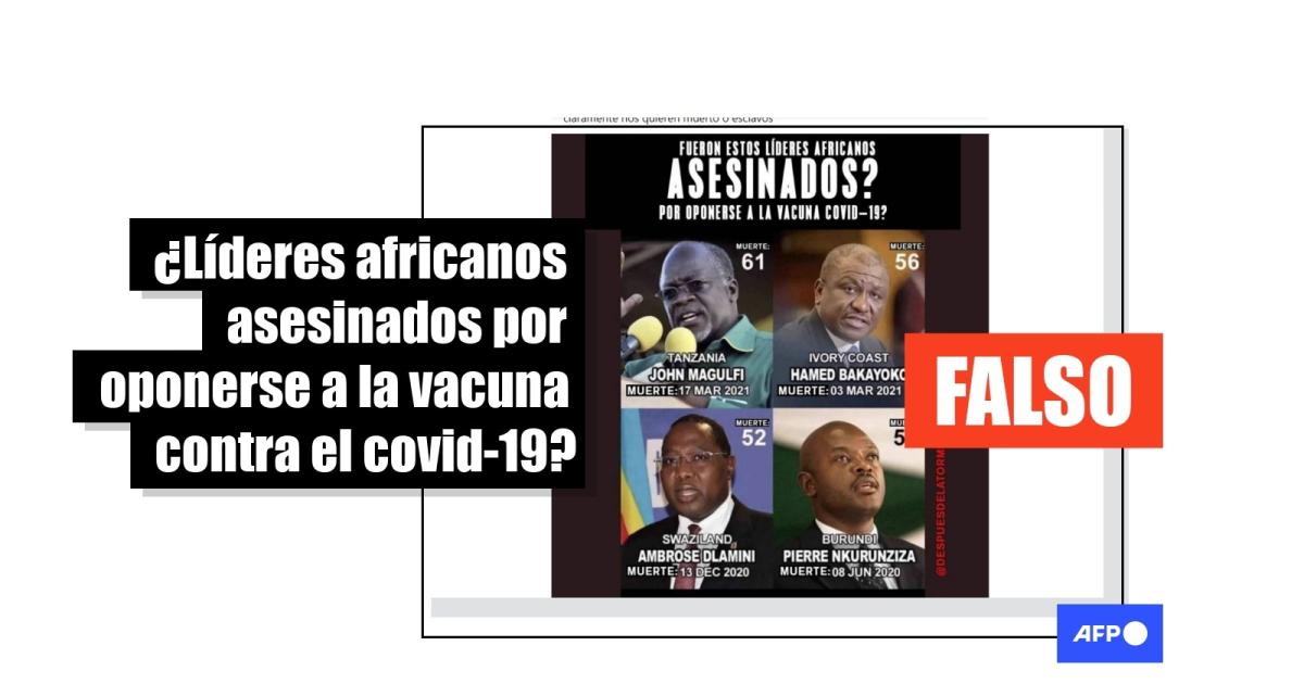 “Fueron estos líderes africanos asesinados? Por oponerse a la vacuna covid-19?”, rezan los contenidos difundidos en español e inglés, junto con imágenes de los políticos, en Facebook (1, 2) y X (1, 2), antes llamado Twitter.