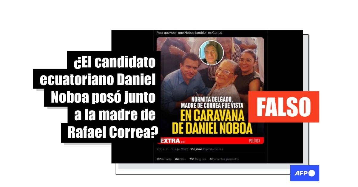 La foto del candidato ecuatoriano Daniel Noboa junto a la madre de Rafael Correa es un montaje