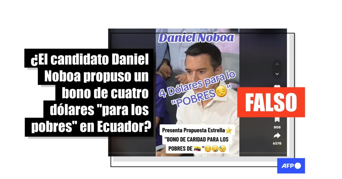Contactado por la AFP, el equipo de prensa del candidato dijo que Noboa no hizo las declaraciones del video viral. “Esa no es la voz de Daniel, por eso el tema de fondo se escucha por encima de su voz. El montaje lo hicieron sobre el video de la rueda de prensa”, señalaron.