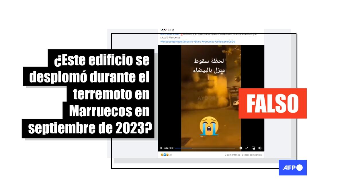 “Momentos en que colapsa un edificio debido al potente terremoto que sacudió Marruecos”, dice una publicación en X, antes llamado Twitter, junto a una secuencia de 12 segundos en la que se ve un edificio viniéndose abajo con una inscripción en árabe.