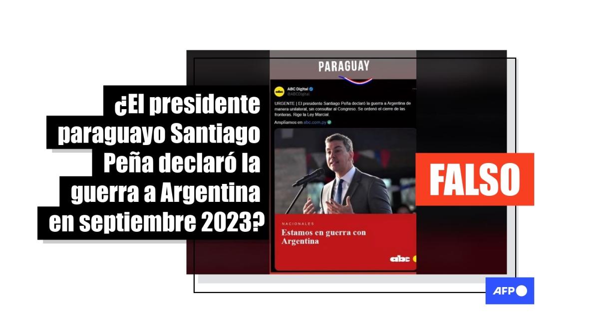 “URGENTE El presidente Santiago Peña declaró la guerra a Argentina de manera unilateral, sin consultar al Congreso. Se ordenó el cierre de las fronteras. Rige la Ley Marcial”, se lee en la captura de una supuesta publicación del diario paraguayo ABC, que cuenta con más de 200 mil visualizaciones en TikTok y Facebook.