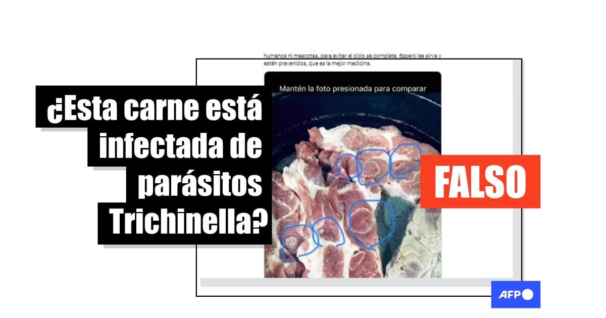 El contenido, que circula al menos desde 2019, agrega: “‘Les cuento para que vean que a cualquiera le puede pasar, en cualquier carnicería lo pueden vender (...) Este parasito es muy difícil combatir una vez en nuestro cuerpo, provoca unos dolores musculares invalidantes en el mejor de los casos, no se destruye por temperatura, ya que esta debe ser mayor de 70 grados por más de 20 minutos, por lo que es ideal descartarla, NO consumirla ni humanos ni mascotas, para evitar el ciclo se complete’”.