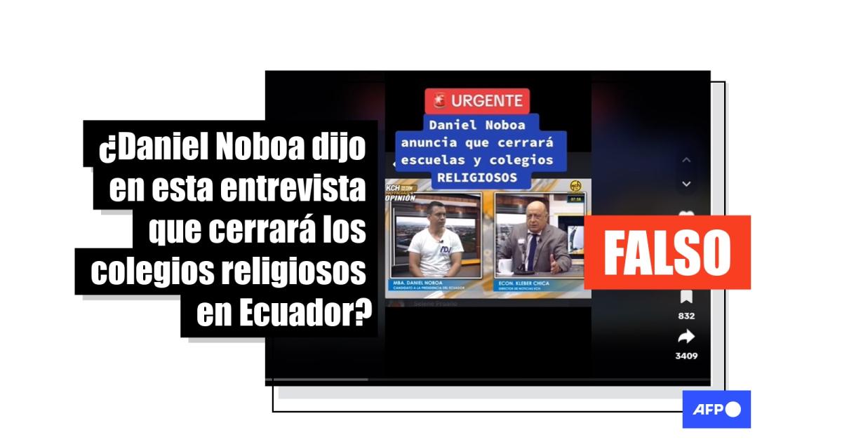 Contactado por AFP Factual el 20 de septiembre, el buró central de campaña de Noboa aclaró que el candidato no contempla el cierre de colegios. “Su postulado es impulsar la educación, mejorarla ¿Cómo va a cerrar los planteles religiosos? Es un país donde hay libertad de credo y colegios tradicionales de varios credos religiosos”.