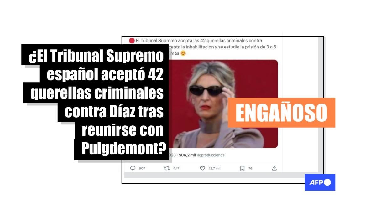 El gabinete de prensa del Tribunal Supremo respondió el 22 de septiembre de 2023 a la consulta de AFP Factual sobre las afirmaciones virales: “No sé de dónde se han sacado ese dato de 42 querellas”. “Aquí no se ha aceptado nada”, agregó.