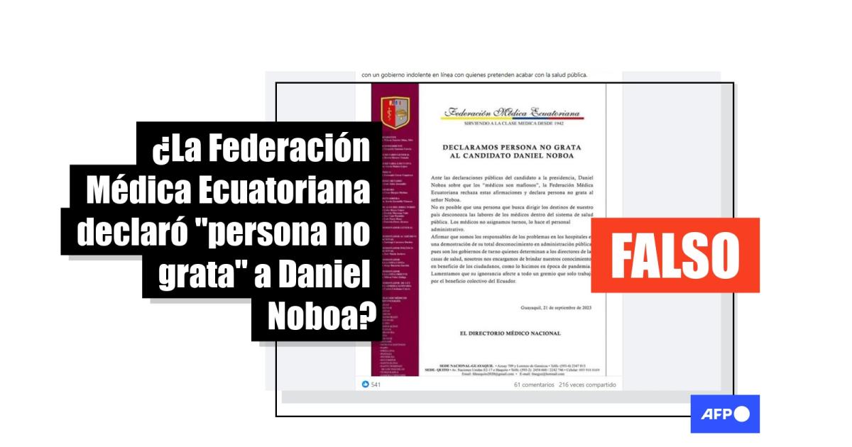 Es apócrifo un supuesto mensaje de la Federación Médica Ecuatoriana en rechazo a Daniel Noboa