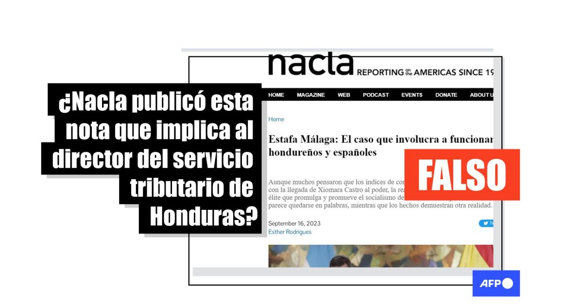 “Estafa Málaga: El caso que involucra a funcionarios hondureños y españoles”, se titula el reportaje publicado en un sitio web acreditado a The North American Congress on Latin America (Nacla), una organización que analiza el papel de Estados Unidos en América Latina, y que ha sido difundido en Facebook (1, 2) y X, antes Twitter (1, 2).