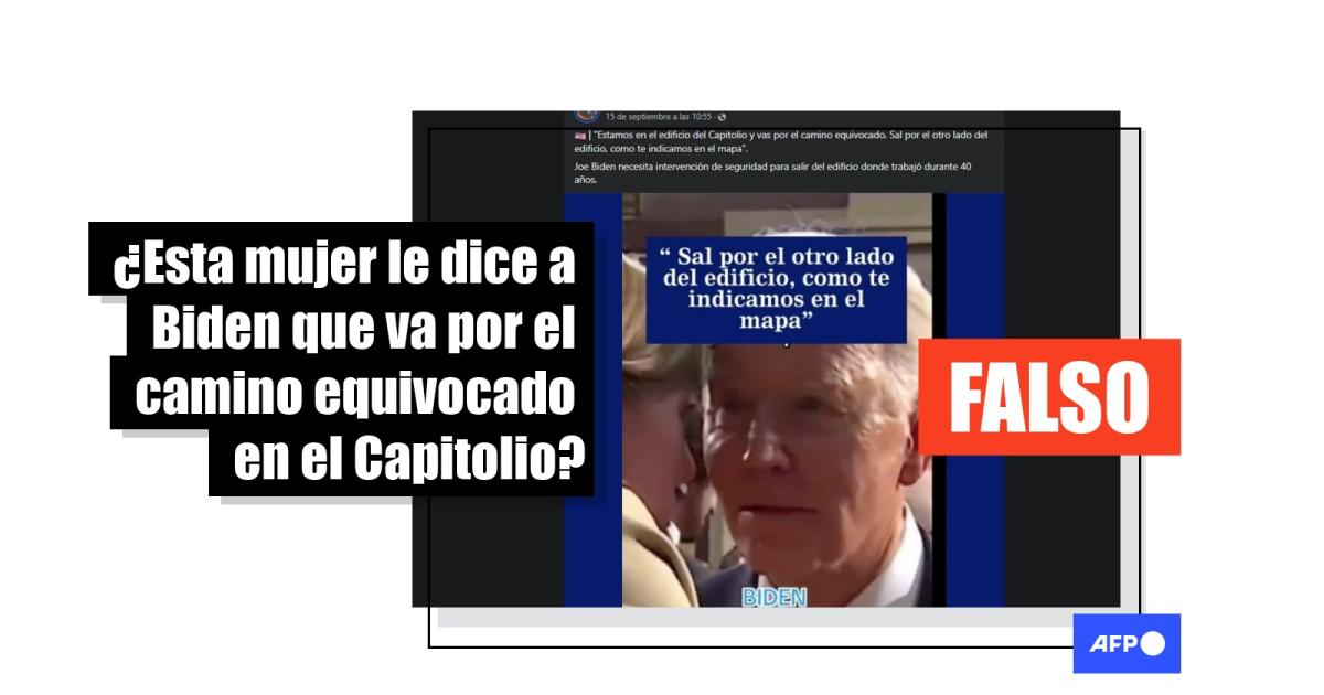 “Joe Biden vuelve a necesitar un consejo de seguridad: ‘Estamos en el edificio del Capitolio y vas por el camino equivocado. Sal por el otro lado del edificio como te indicamos en el mapa’. El viejo Joe tomó el camino equivocado en el edificio donde trabajó durante 40 años”, dicen las publicaciones que difunden la secuencia en Facebook, X (antes Twitter) y TikTok.