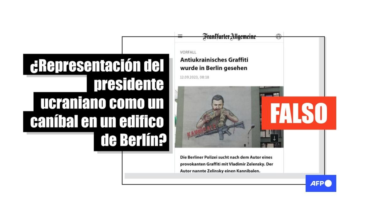 “Alguien en Berlín pintó un graffiti de Zelensky como un caníbal que se come a sus soldados”, señala una entrada en Facebook, acompañada de la imagen de un gran mural del presidente ucraniano, Volodomir Zelenski, comiendo el brazo de un soldado que aún sostiene un arma. Según usuarios de X (antes Twitter), la policía “busca a los autores para castigarlos”.