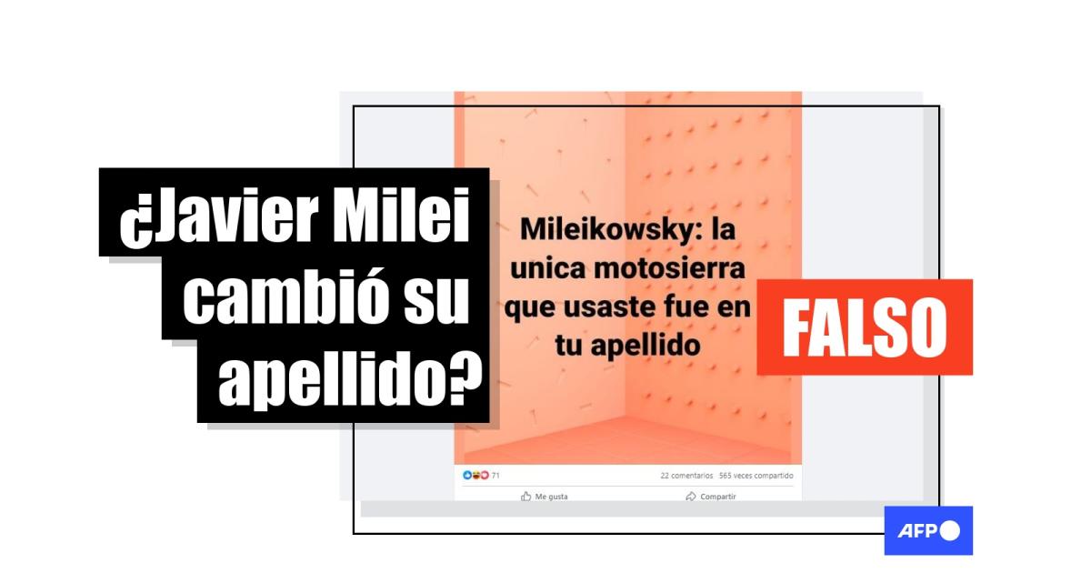 “Mileikowsky: la única motosierra que usaste fue en tu apellido”, se lee en una publicación en Facebook. En otra entrada, una usuaria se pregunta si es legal que un candidato a presidente “ponga en las boletas electorales un apellido que no es real”.