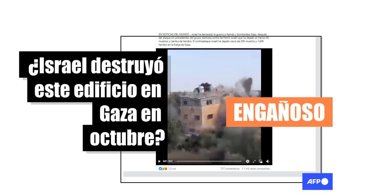 La usuaria recoge en su tuit que la explosión es de un edificio residencial y comparte otra perspectiva del incidente, asegurando que ese día se registraron “ataques (israelíes) sucesivos contra viviendas en toda Gaza, con el único propósito de provocar una destrucción total”. La AFP no ha podido encontrar registros del video anteriores a mayo de 2023.