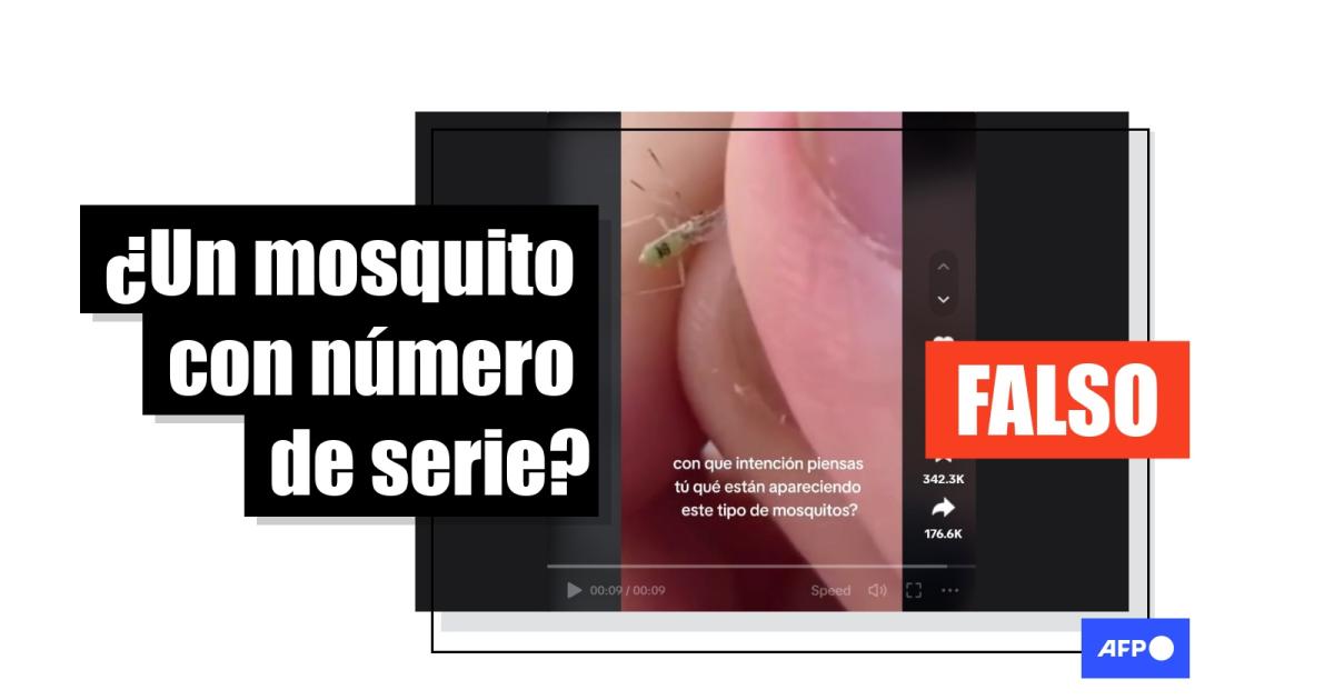 “Aparecen mosquitos con número de serie” y “Hace tan sólo unas horas, comenzó a circular en redes un video en donde supuestamente se muestra a un mosquito que presenta un número de serie”, señalan publicaciones en Facebook (1, 2) y TikTok.