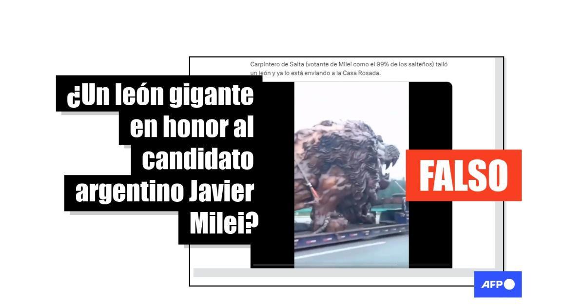 “Carpintero de Salta (votante de Milei como el 99% de los salteños) talló un león y ya lo está enviando a la Casa Rosada”, sede del Poder Ejecutivo argentino, señalan algunas de las publicaciones que comparten el video en Facebook y X.