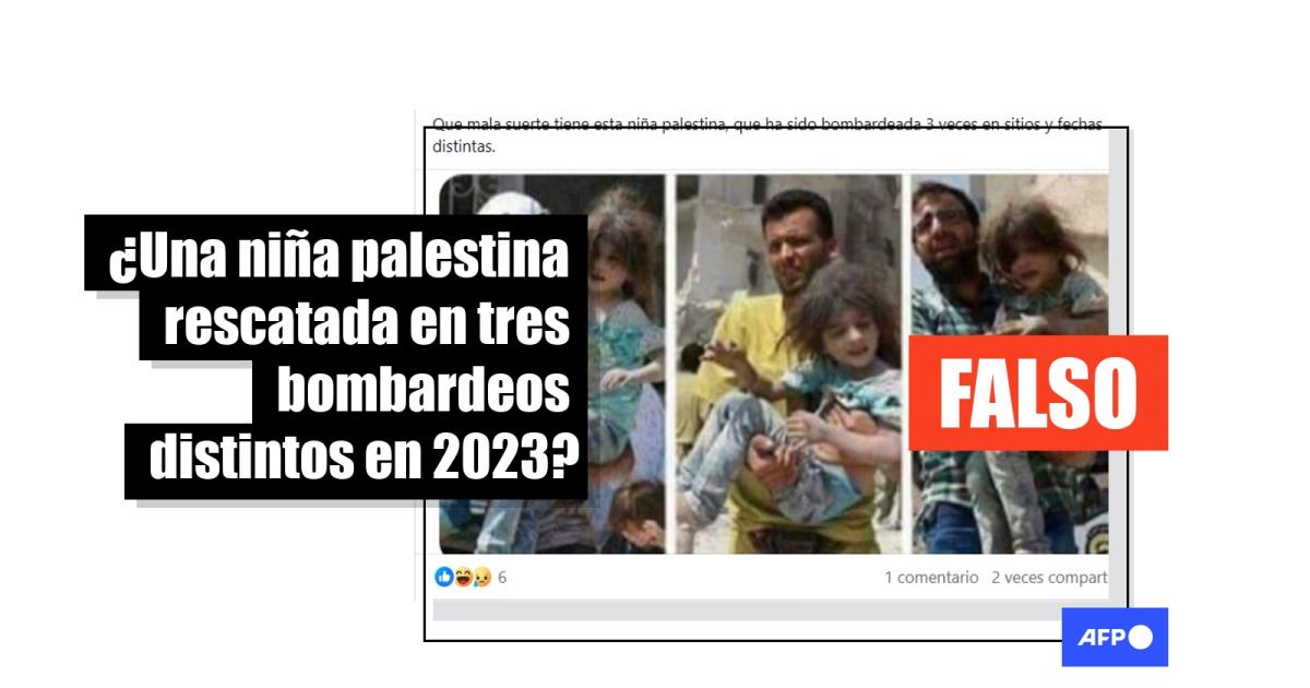 “Que mala suerte tiene esta niña palestina, que ha sido bombardeada 3 veces en sitios y fechas distintas”, señalan entradas en Facebook (1, 2), Instagram y X.