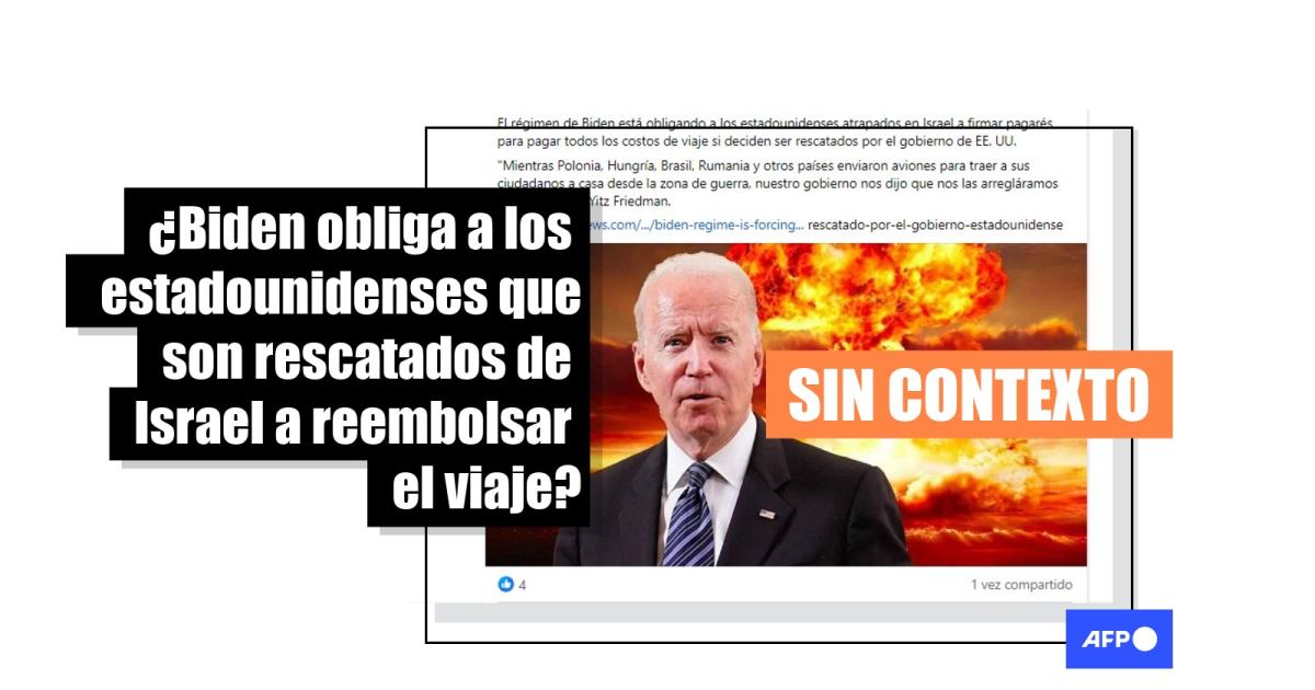 “El régimen de Biden obliga a los estadounidenses atrapados en Israel a firmar pagarés para reembolsar todos los gastos de viaje si deciden ser rescatados por el gobierno de EE.UU.”, señalan entradas compartidas desde el 12 de octubre de 2023 en Facebook (1, 2), Telegram y X, antes Twitter.