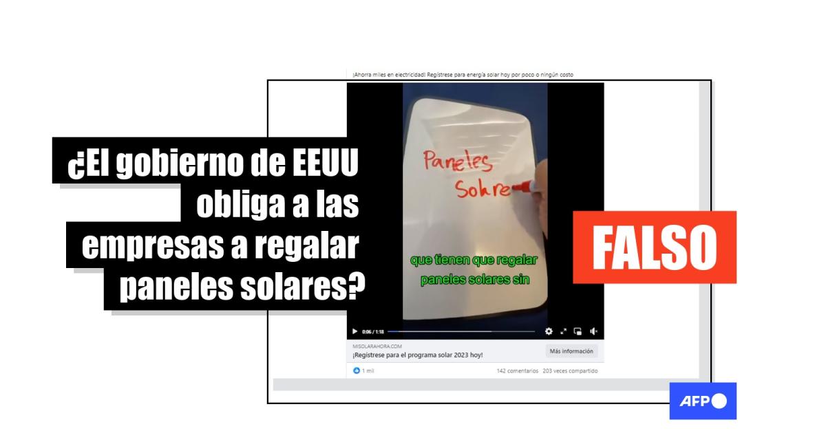 Por su parte, Patricia Schouker, analista de energía y seguridad, dijo que las publicaciones son falsas, ya que si bien el gobierno de Estados Unidos ofrece varios incentivos para la adopción de energía solar, no obliga a las empresas a “regalar” paneles solares.