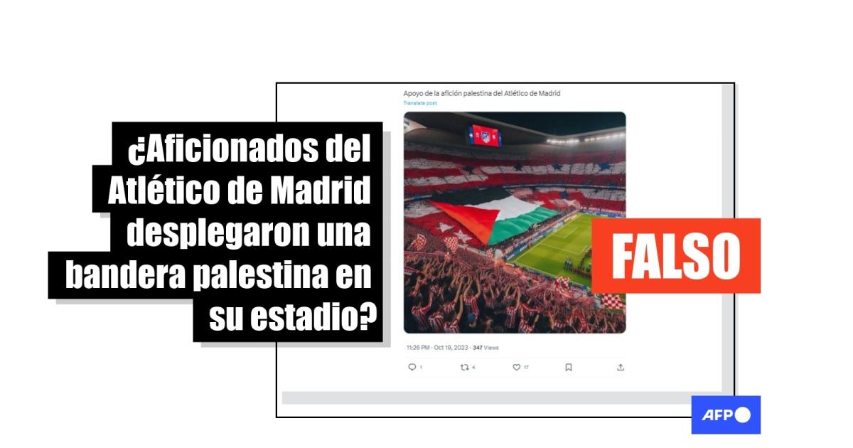 Las publicaciones afirman que los aficionados del club de fútbol español Atlético de Madrid mostraron su apoyo al pueblo palestino en medio de la guerra entre Hamás e Israel.