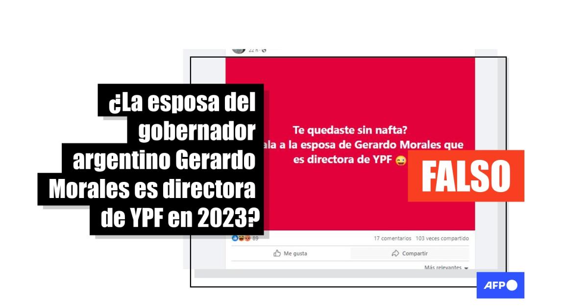 “Te quedaste sin nafta? Llamala a la esposa de Gerardo Morales que es directora de YPF ”, se lee en una publicación en Facebook. En X (antes Twitter), usuarios afirman que la mujer fue nombrada en ese cargo “recientemente” (1, 2).