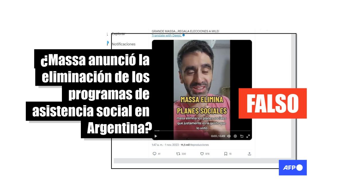 El candidato argentino Sergio Massa no anunció que eliminará los programas sociales