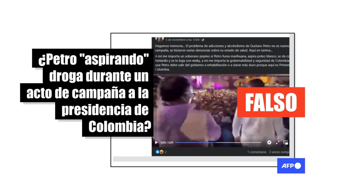 “Hagamos memoria... El problema de adicciones y alcoholismo de Gustavo Petro no es nuevo. En campaña, se hicieron varias denuncias sobre su estado de salud. Aquí en la tarima”, dice una de las entradas en Facebook (1, 2) y X, antes Twitter. La misma secuencia se difundió en junio de 2023 (1, 2) asegurando “que PETRO es consumidor de COCAINA y este video de campaña lo confirma”.