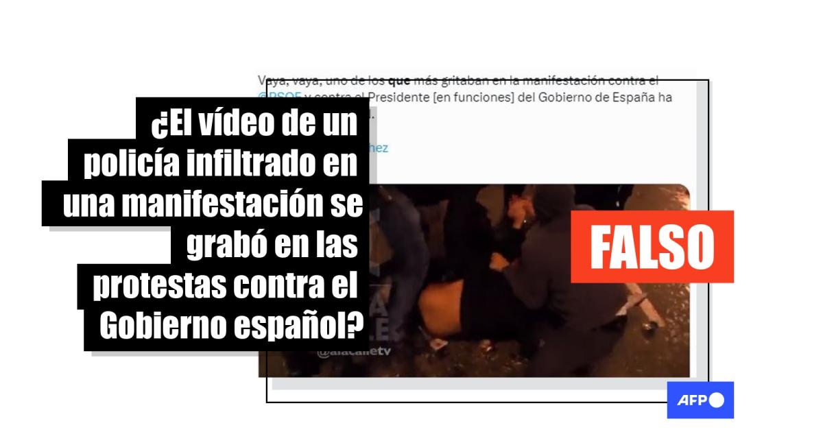 “Vaya, vaya, uno de los que más gritaban en la manifestación contra el PSOE y contra el Presidente [en funciones] del Gobierno de España ha resultado ser un PN”, señaló una publicación en X (antes Twitter), con un vídeo en el que un grupo de policías se dirige a un hombre y le derriba, mientras este dice ser “compañero”. Esta secuencia también ha sido compartida en Facebook como si fuera actual.