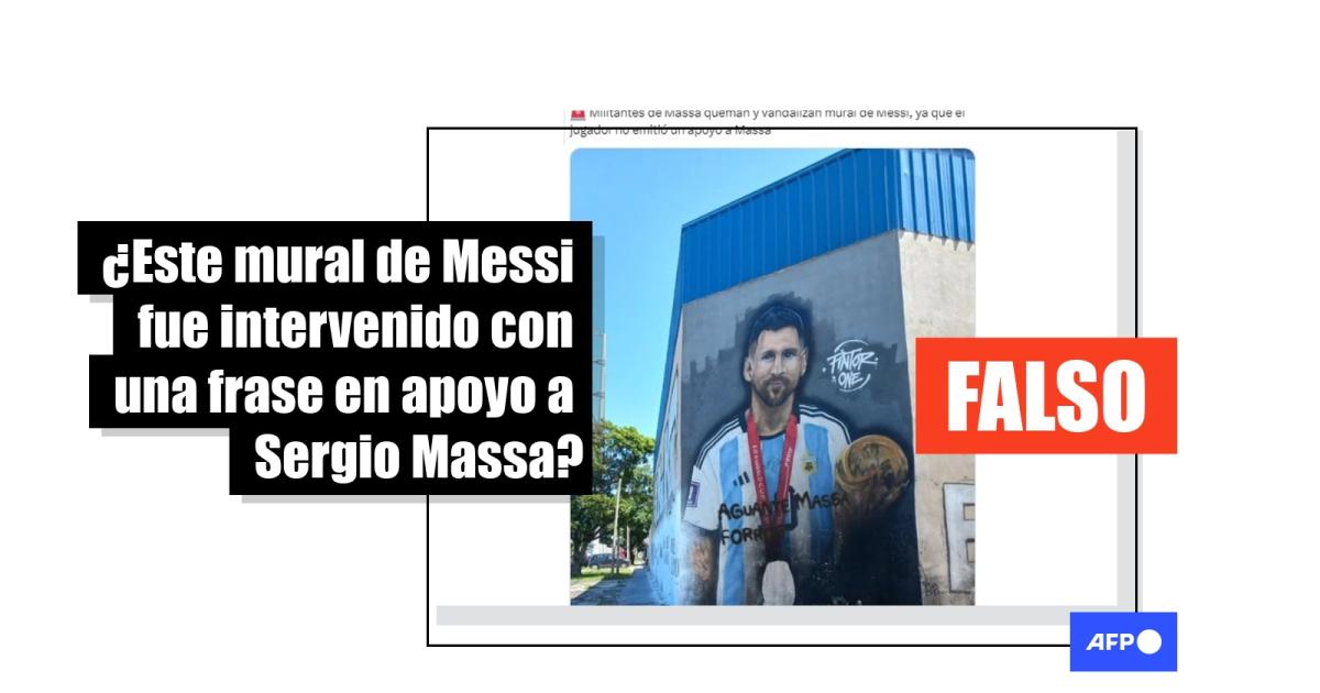 La foto del mural de Messi con una frase en apoyo al candidato argentino Massa es un montaje