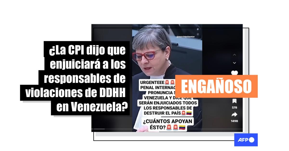 “URGENTEEE. LA CORTE PENAL INTERNACIONAL SE PRONUNCIA SOBRE VENEZUELA Y DICE QUE SERÁN ENJUICIADOS TODOS LOS RESPONSABLES DE DESTRUIR EL PAÍS. ¿CUÁNTOS APOYAN ESTO?”, dice un texto sobre el video difundido en Facebook (1, 2) y TikTok.