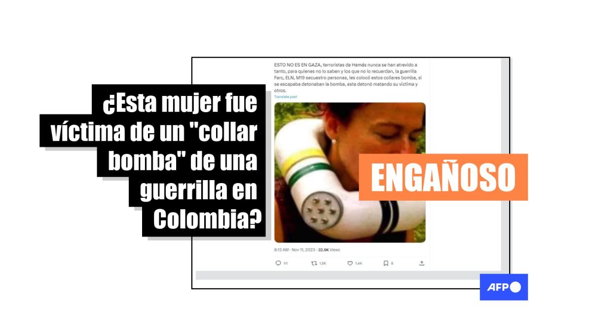 El caso del collar bomba en Colombia no fue atribuido a una guerrilla, y esta foto es de una actriz
