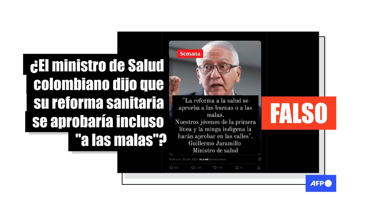 Consultado por la AFP, Yesid Lancheros, subdirector de información del Grupo Semana, confirmó que la revista no publicó la imagen viral ni la frase atribuida al ministro de Salud. “Es falso, nunca publicamos eso”, expresó el periodista.
