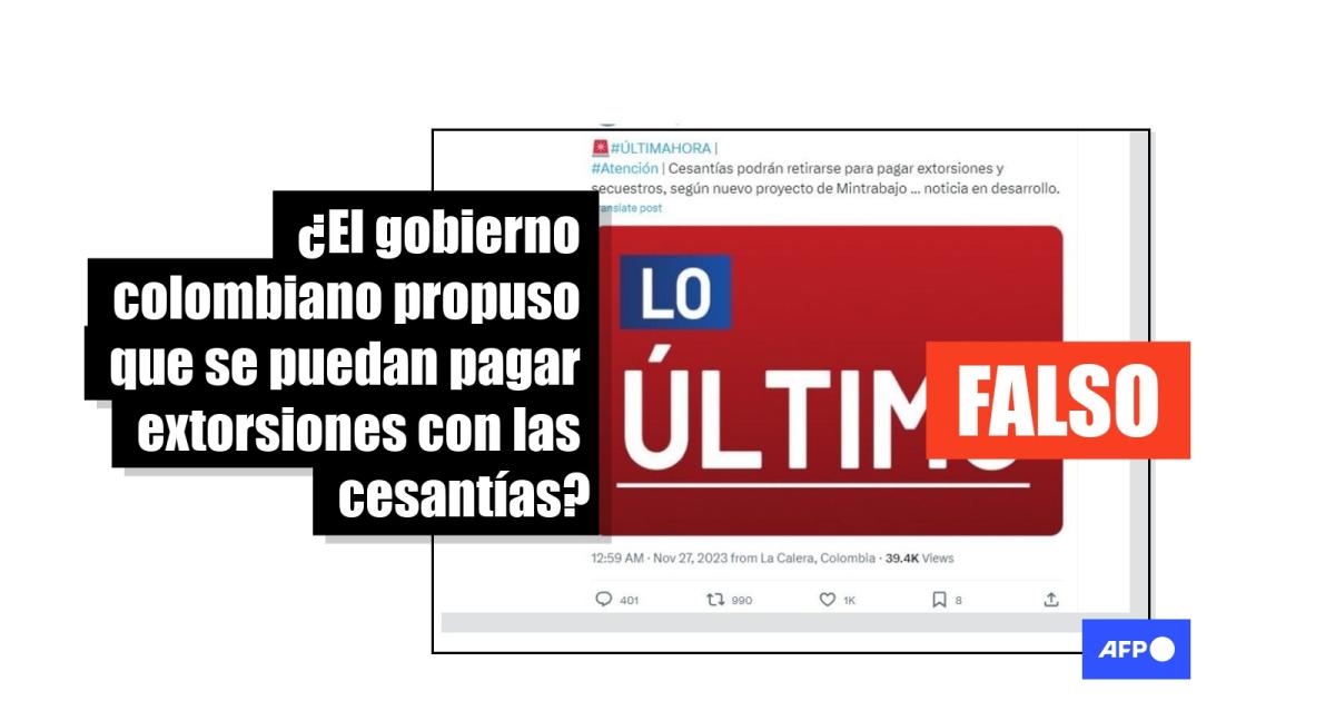 “Cesantías podrán retirarse para pagar extorsiones y secuestros, según nuevo proyecto de Mintrabajo”, indican las publicaciones compartidas en Facebook (1, 2) y X (1, 2), antes Twitter.
