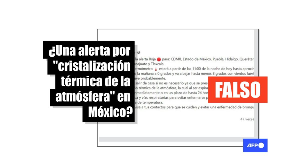 Sin embargo, ni los frentes fríos ni algún otro fenómeno climatológico o ambiental tienen relación con la “cristalización térmica de la atmósfera”, como afirman usuarios en redes sociales.