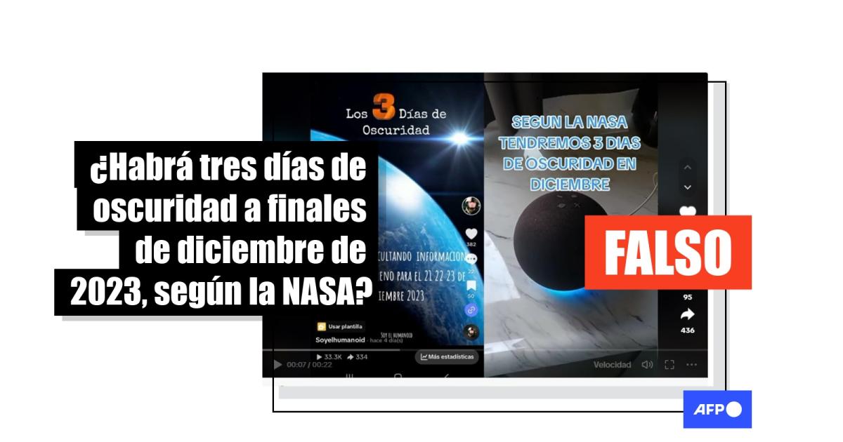 “Según la nasa tendremos 3 días de oscuridad en diciembre…”, dicen publicaciones en Facebook (1, 2, 3) y TikTok.