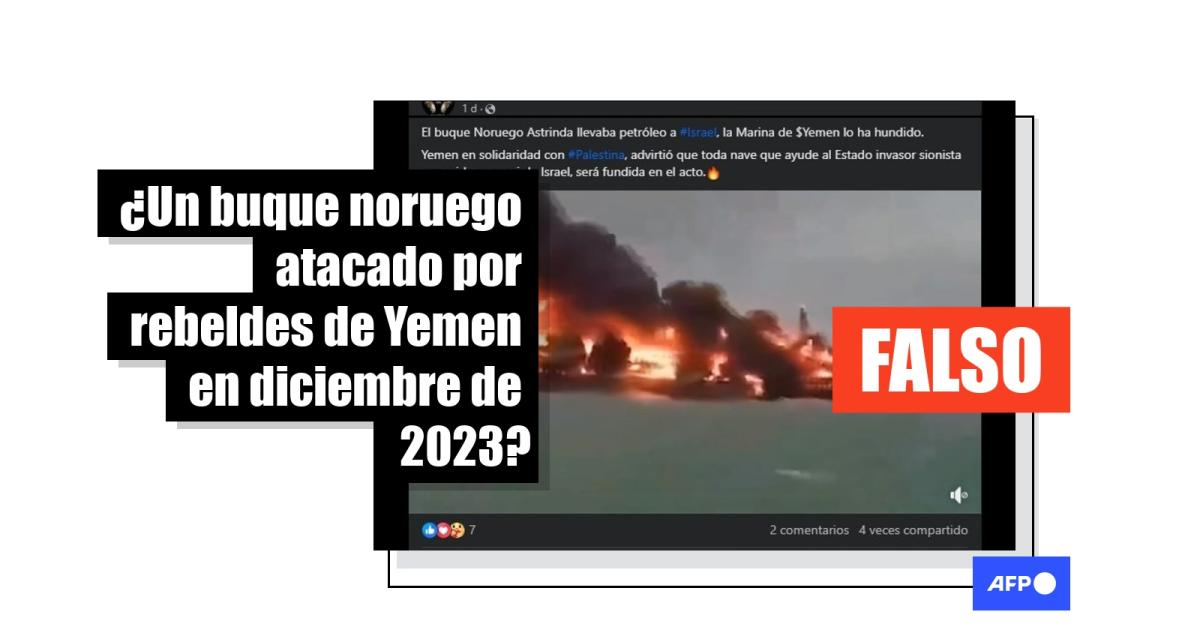 “El buque Noruego Astrinda llevaba petróleo a Israel, la Marina de Yemen lo ha hundido. Yemen en solidaridad con Palestina, advirtió que toda nave que ayude al Estado invasor sionista genocida neonazi de Israel, será fundida en el acto”, afirma una de las publicaciones que difunden el video en Facebook (1, 2), TikTok y X (1, 2), antes Twitter.