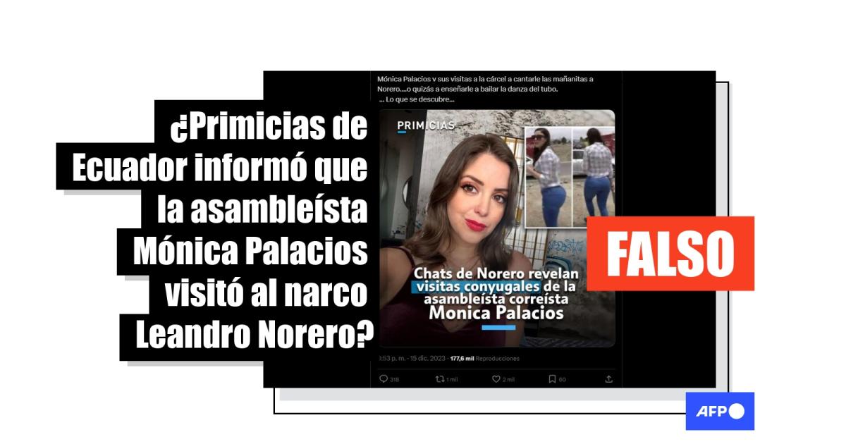 “Chats de Norero revelan visitas conyugales de la asambleísta correísta Monica Palacios”, dice el titular compartido en X (1, 2) y Facebook (1, 2).