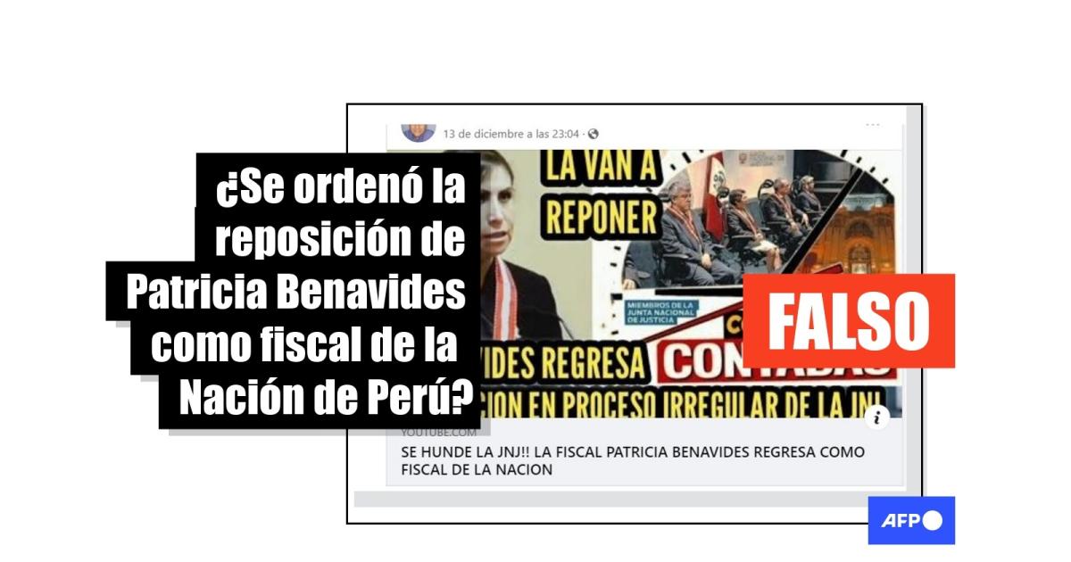 “Se hunde la JNJ!! [Junta Nacional de Justicia de Perú] La fiscal Patricia Benavides regresa como fiscal de la Nación”, se lee en la vista previa de un video publicado en Facebook, que enlaza a la grabación original, alojada en YouTube.