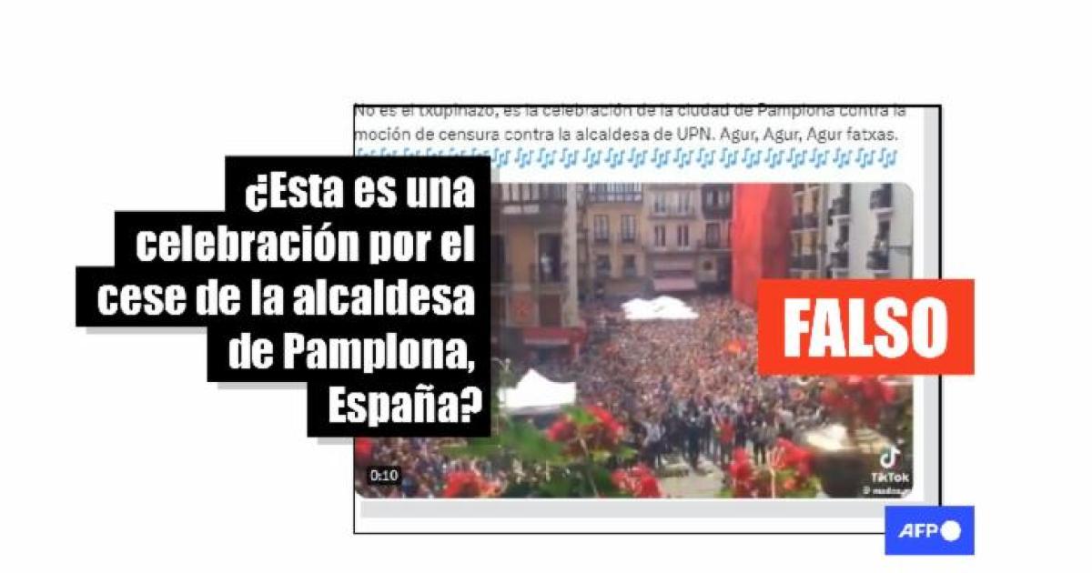 “No es el txupinazo, es la celebración de la ciudad de Pamplona contra la moción de censura contra la alcaldesa de UPN”, aseguró un usuario en X. Mensajes similares también fueron compartidos en Facebook.
