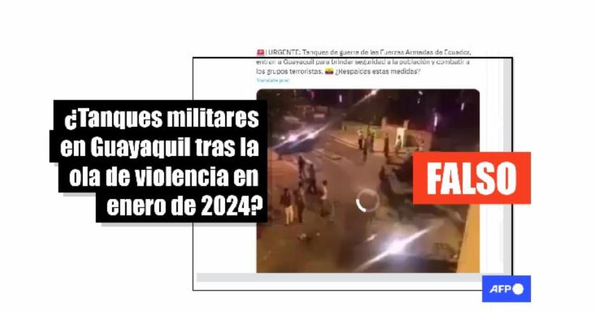 “URGENTE: Tanques de guerra de las Fuerzas Armadas de Ecuador, entran a Guayaquil para brindar seguridad a la población y combatir a los grupos terroristas. ¿Respaldas estas medidas?”, dicen publicaciones difundidas en Facebook (1, 2) y X.
