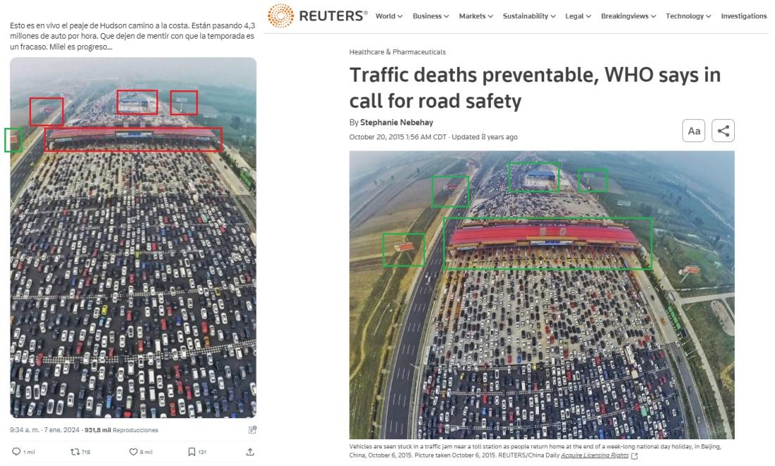 Una búsqueda inversa en Google Lens de la foto viralizada llevó a un usuario de X que retuiteó un posteo del diario colombiano El Tiempo de 2015 donde se ve la misma imagen con la siguiente descripción: “¡Impresionante! Gran embotellamiento en avenida de 50 carriles en China”.