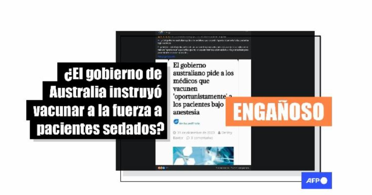 “El gobierno australiano pide a los médicos que vacun3n 'oportunistamente' a los pacientes bajo anestesia. El gobierno australiano ha publicado un aviso instruyendo a los médicos a administrar v4cunas de manera ‘oportunista’ a pacientes que no lo deseen mientras están sedados o bajo anestesia para procedimientos no relacionados”, afirma una de las publicaciones que circulan en Facebook (1, 2), Telegram (1, 2) y X (1, 2).
