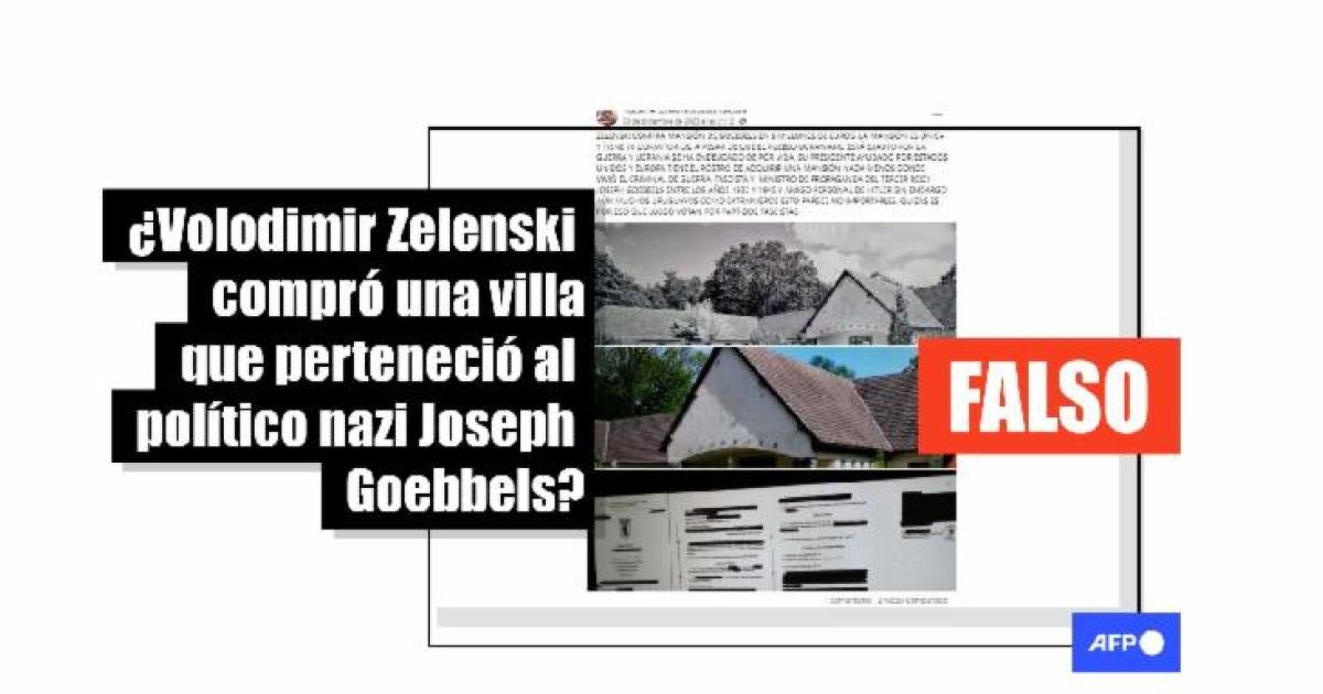 “A PESAR DE QUE EL PUEBLO UCRANIANO ESTÁ EXAUTO POR LA GUERRA Y UCRANIA SE HA ENDEUDADO DE POR VIDA, SU PRESIDENTE AYUDADO POR ESTADOS UNIDOS Y EUROPA TIENE EL ROSTRO DE ADQUIRIR UNA MANSIÓN NADA MENOS DONDE VIVIÓ EL CRIMINAL DE GUERRA, FASCISTA Y MINISTRO DE PROPAGANDA DEL TERCER REICH”, aseguran publicaciones en Facebook (1, 2) y X.