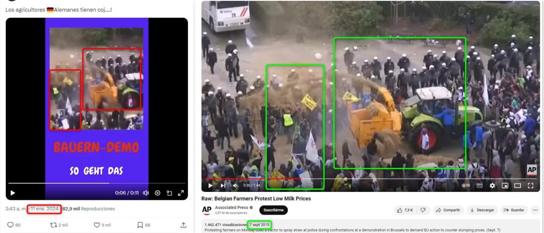 Ambas secuencias viralizadas se han relacionado falsamente con otras protestas de años previos, como 2021 y 2022, contenidos que la AFP ya ha verificado.