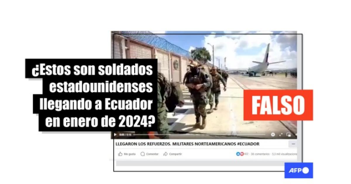 “LLEGARON LOS REFUERZOS. MILITARES NORTEAMERICANOS #ECUADOR”, dicen publicaciones compartidas en Facebook (1, 2) y TikTok desde el 14 de enero de 2024.