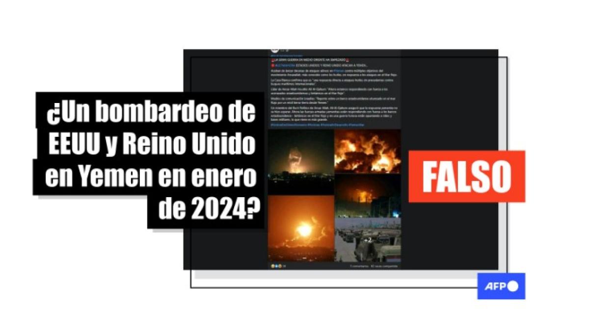 Fotos de explosiones circulan vinculadas falsamente a bombardeos en Yemen en 2024