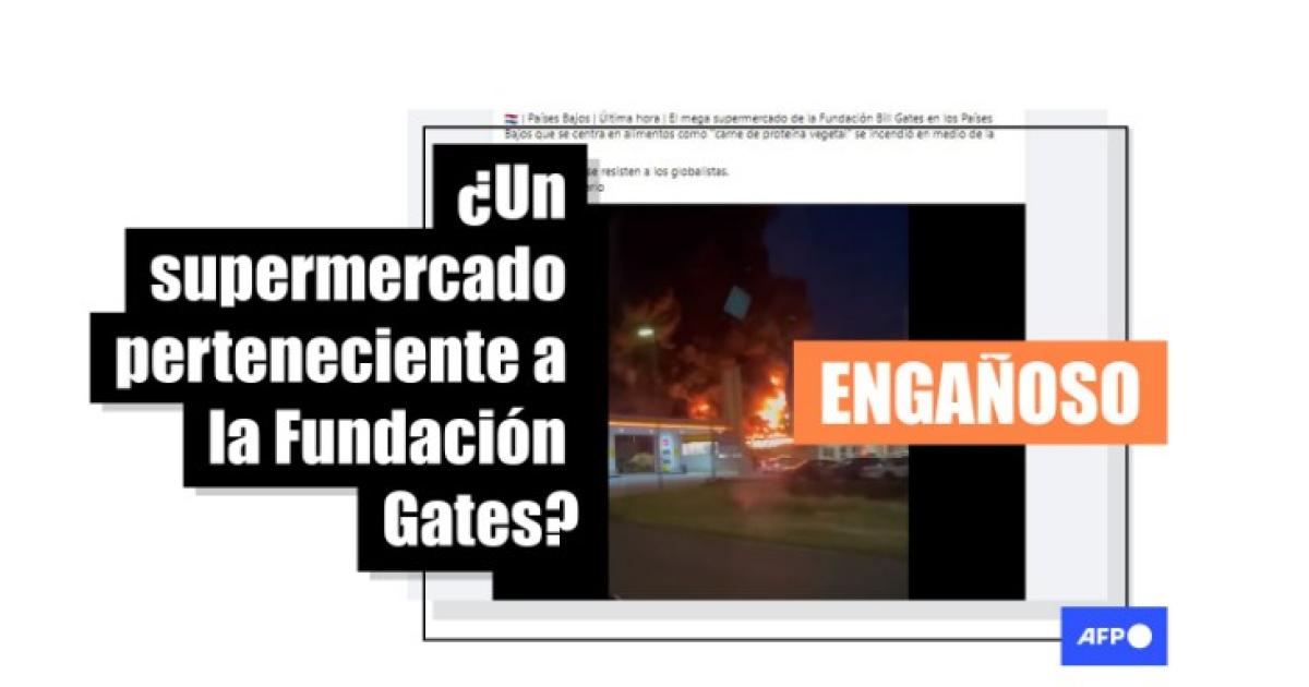 “Última hora | El mega supermercado de la Fundación Bill Gates en los Países Bajos que se centra en alimentos como ‘carne de proteína vegetal’ se incendió en medio de la noche... Los holandeses se resisten a los globalistas”, dicen publicaciones en Facebook (1, 2) y X.