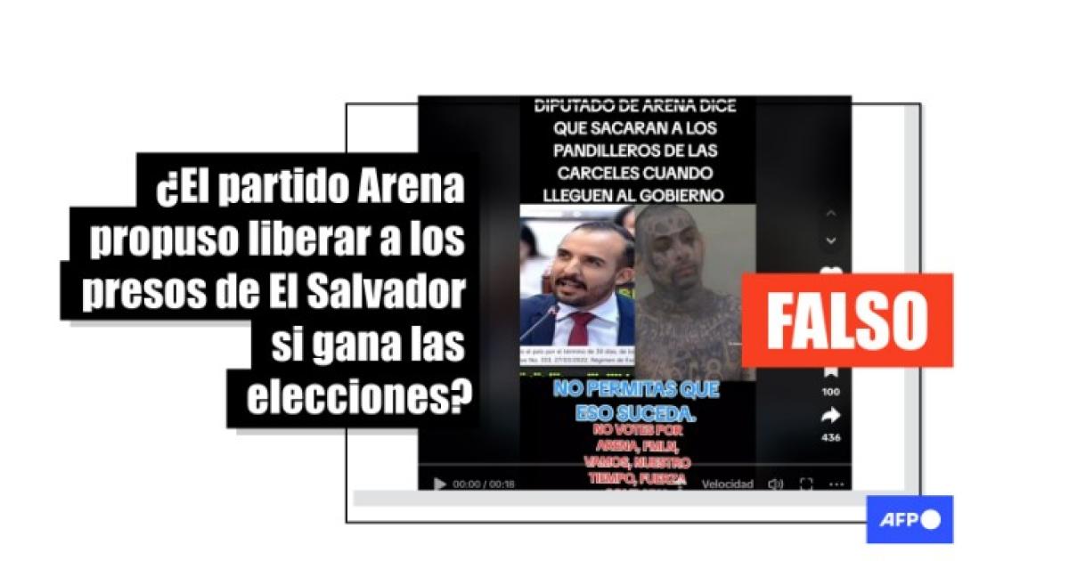 Por otra parte, Reyes no es aspirante a la Presidencia: él busca la reelección como diputado de la Asamblea Legislativa para el periodo 2024-2029. El candidato presidencial del partido Arena es Joel Sánchez y entre sus propuestas tampoco figura el excarcelamiento de pandilleros.