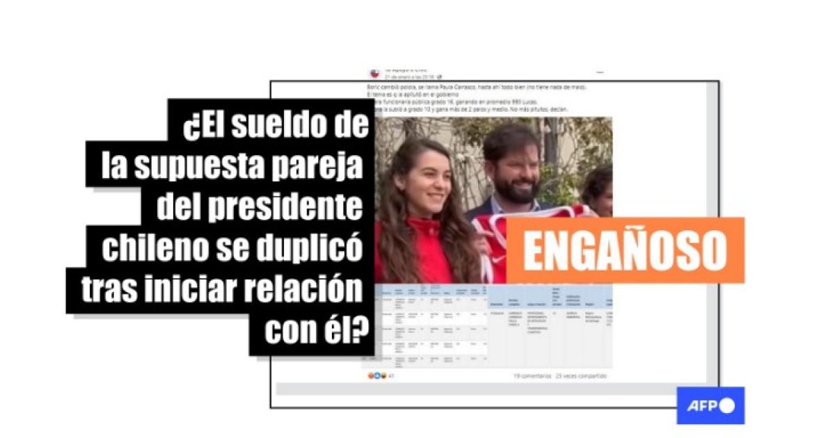 Las publicaciones aseguran que Paula Carrasco habría pasado de percibir 990.000 pesos chilenos (unos 1.060 dólares al cambio de enero de 2024) a ganar más de 2.000.000 (unos 2.150 dólares) tras el comienzo de su relación con Boric y, para probarlo, comparten distintas capturas de pantalla de su supuesto salario en 2021 y 2023, extraídas del portal Transparencia Activa.
