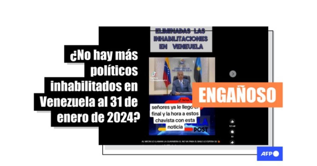 “Eliminadas las inhabilitaciones en Veneuela. Señores ya le llego el final y la hora a estos chavista con esta noticias”, dice un texto sobrepuesto en un video compartido en Facebook (1, 2) y TikTok (1, 2).